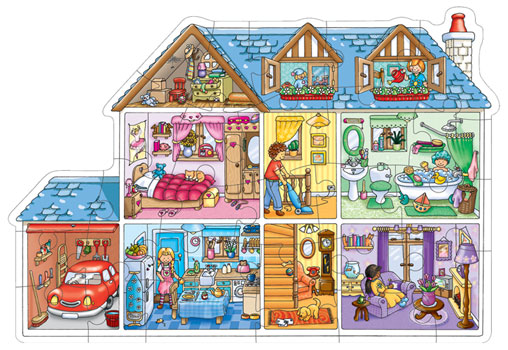 Velké podlahové interaktivní puzzle. Vybízí k mluvení s dítětem o tom, co se