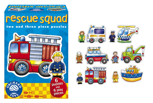 Vzdělávací puzzle pro nejmensí děti. postavte si záchranářské auto, vrtulník nebo loď a přiřaďte postavičku záchranáře ke správnému dopravnímu prostředku